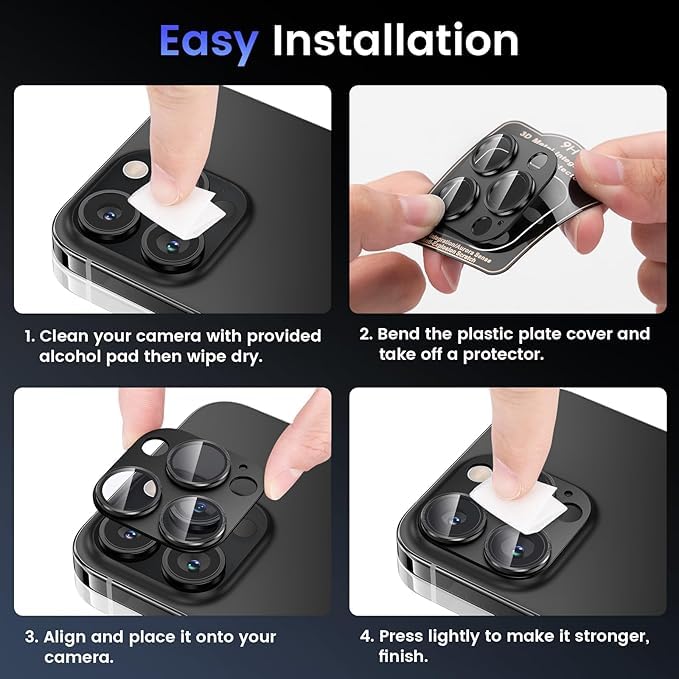 - [تركيب سهل وخالٍ من الفقاعات:] يتميز الواقي بتقنية لاصقة ذكية تجعل عملية التركيب بسيطة وسريعة، بدون ظهور فقاعات هواء أو غبار، مما يضمن تثبيتًا متينًا ومتناسقًا يحمي العدسة بأعلى كفاءة.