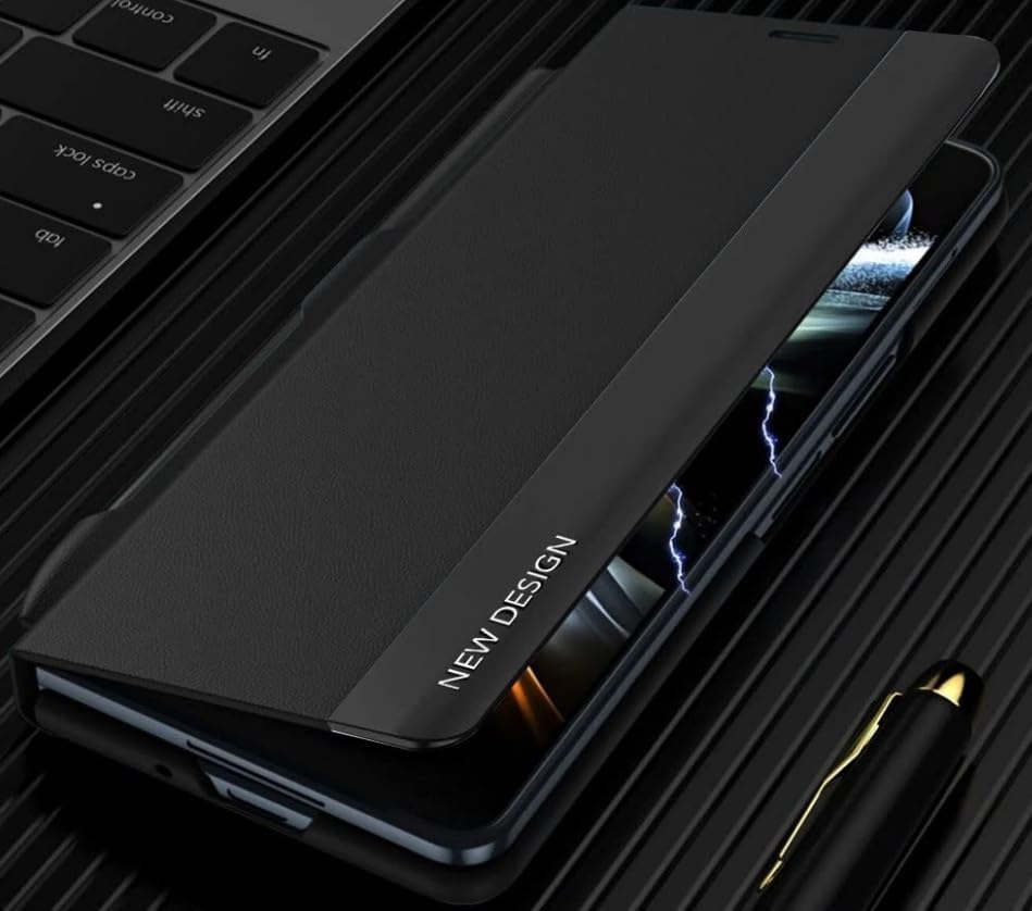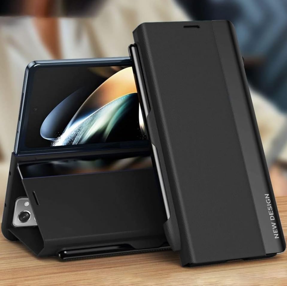 Next store - Next Store Case Compatible For SamsungGalaxy Z Fold 4 Side Electroplating Adsorption Ultra-thin Leather Phone Case with Pen (Black)