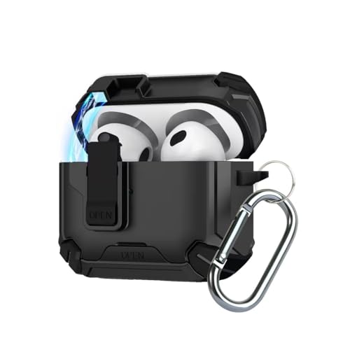 Next store - Next Store Case Compatible with AirPods Pro 2 2nd Generation Silicone Shockproof Waterproof Military Rugged Protective Case Cover with Metal Buckle Lock (Black)