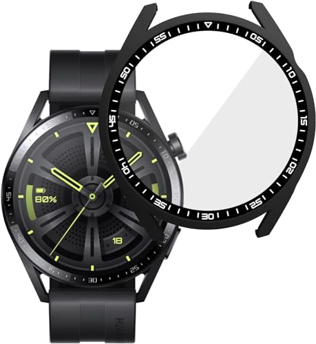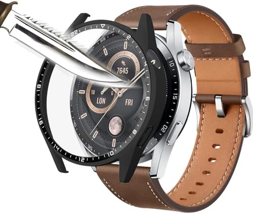 - ◆✪【PERFECT DESIGN】:Extremely durable polycarbonate case + tempered glass screen protector, covers the whole front and curved edges of the 46mm HUAWEI GT 3 watch, protecting from scratches, drops and bumps.