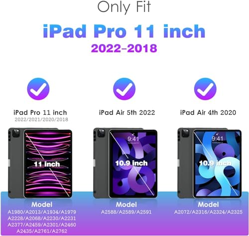 - 【Compatibility】- Protective Case for iPad Pro 11" 2nd Generation 2020 (Model number: A2228 A2068 A2230 A2231), also fit iPad Pro 11 2018 (Model number: A1980 A1934 A1979). NOT compatible with other devices