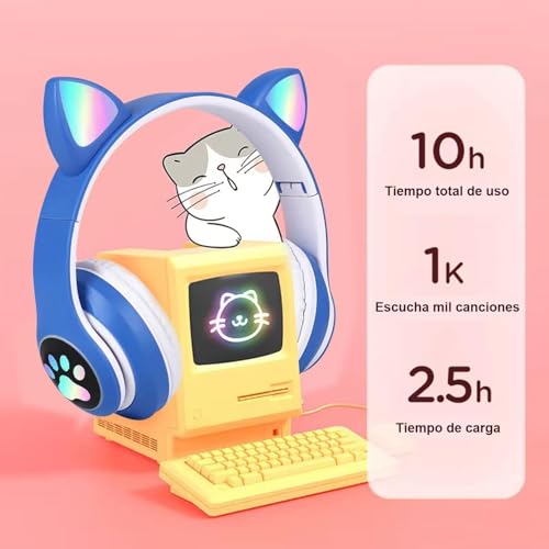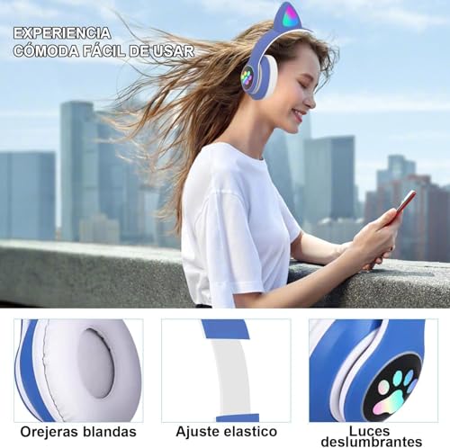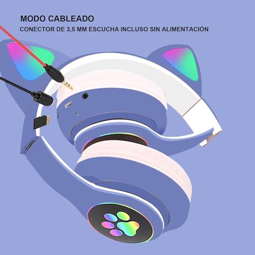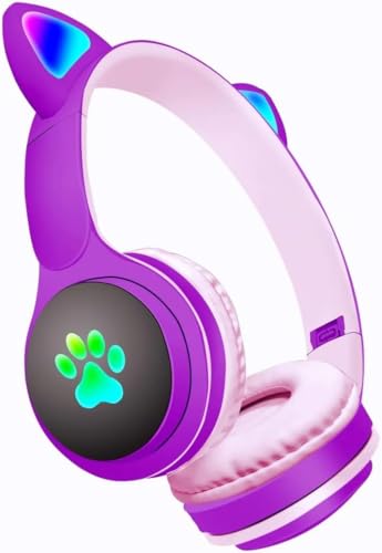 Next store - Next Store Cat Ear Bluetooth Stereo Headphones LED Light Up Wireless Foldable Headphones with Mic and Volume Control - Advanced Bluetooth Technology - Perfect for Music and Calls. (Purple)