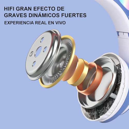 - [BUILT IN LED LIGHTING FOR FUN] : Equipped with colorful LED lights that add a touch of fun and entertainment while in use. Lighting changes dynamically with music, attracting children and making the listening experience more enjoyable. This light can enhance the entertainment experience while playing or watching videos. Thanks to the stylish design, the headphones are a great choice for kids who love to enjoy music in a visual and fun style.