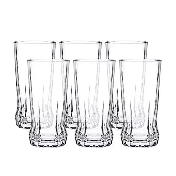 - تصميم زجاجي أنيق: كاسات طويلة شفافة تضيف لمسة مميزة على مائدتك وتبرز جمال المشروبات في كل مناسبة.