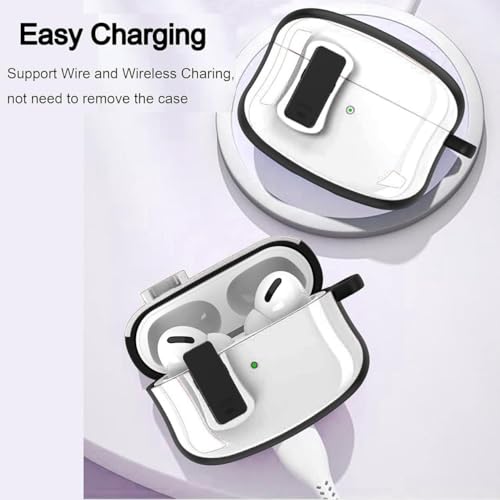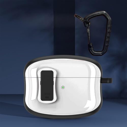 Next store - جراب حماية متوافق مع هيكل سماعات ايربودز برو سلسلة مفاتيح متين بقفل امان ومدرع بنمط عسكري صلب مضاد للصدمات ومقاوم للخدوش لسماعات 2019 من Next store ابيض البولي يوريثين الحراري