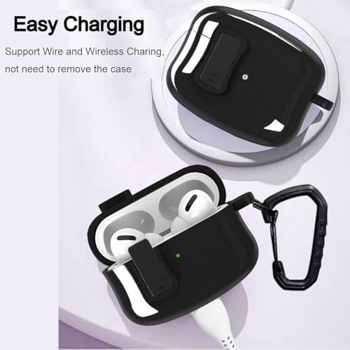 - ✅✔【تصميم بقفل امان】: تصميم بقفل امان: تعمل ميزة القفل على تثبيت الجراب على العلبة بإحكام، ويمكن فتح الغطاء العلوي بضغطة واحدة. يأتي جراب هيكل سماعات الايربودز برو أيضًا مع مشبك حلقة محمول لتعليقها بشنطتك وحلقة الحزام بكلِّ سهولة.
