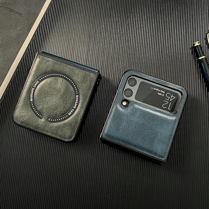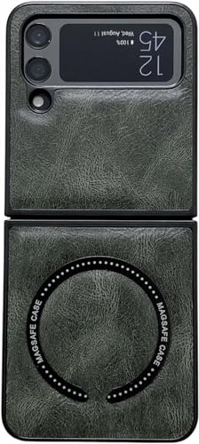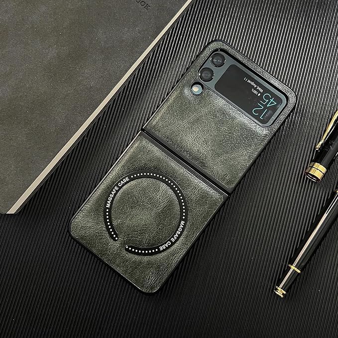 Next store - جراب حماية من الجلد الصناعي الفاخر يدعم خاصية ماج سيف الشحن اللاسلكي لموبايل سامسونج جالاكسي Z فليب 3 من نكست ستور (لون أخضر غامق)