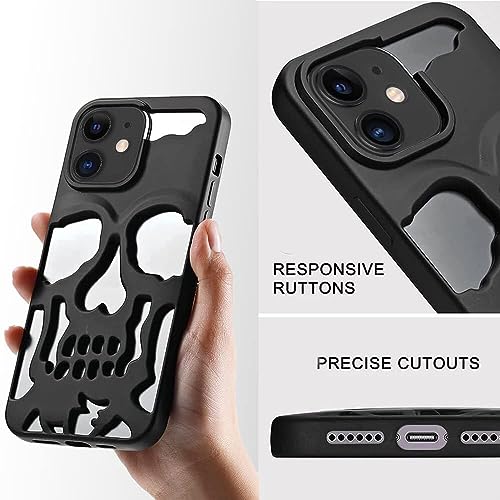 Next store - Next Store Compatible with iPhone 15 PC Case Skull Design with Laser Technology Color Film, Hollow Out Glossy Finish Plating Slim Stylish Shell (Black)