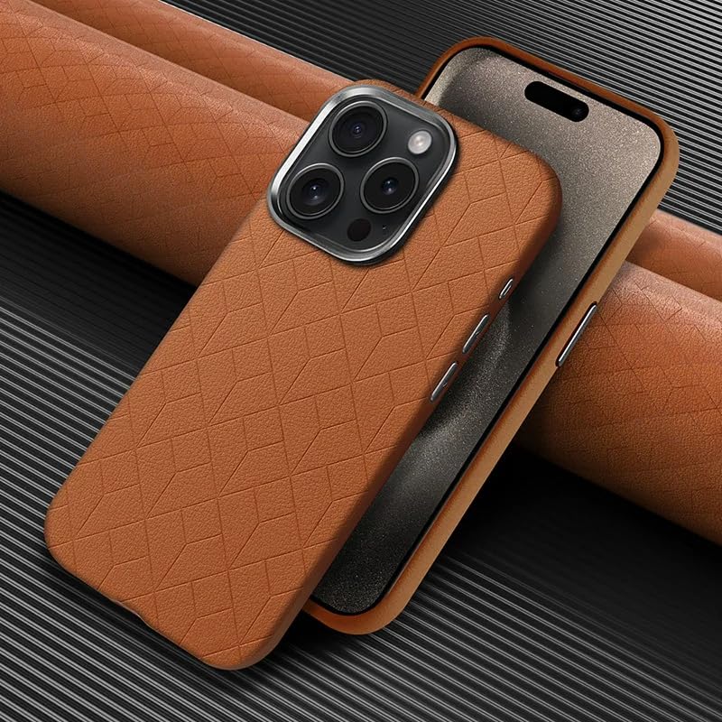 Next store - Next Store Compatible with iPhone 15 Pro Max Luxury PU Leather Phone Case with Metal Camera Protection Shockproof Anti-Scratch Anti-Fingerprint Stylish Stylish Design for Women Men (Brown)