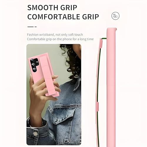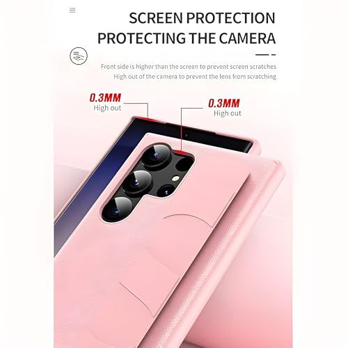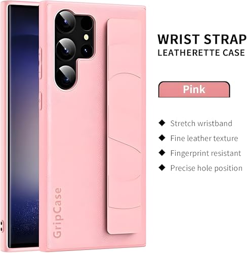 Next store - Next Store Compatible with Samsung Galaxy S22 Ultra Leather Case Cover with Hand Holder Protection Against Scratches and Bumps Stylish Design for Phone (Pink)