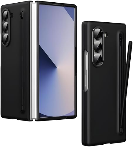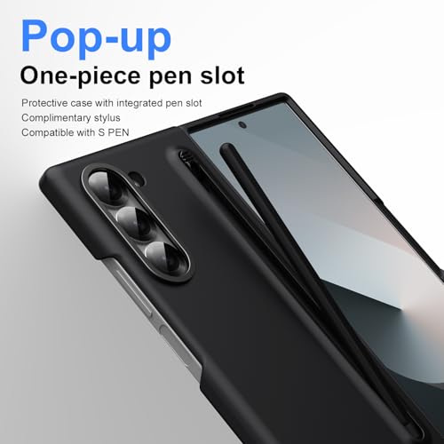 Next store - جراب حماية متوافق مع موبايل سامسونج جالاكسي زد فولد 6 شبكة الجيل الخامس 5G من نكست ستور، جراب رفيع مطفي من البولي كربونات مع قلم ستايلس وحامل قلم، جراب متين وأنيق مضاد للخدش والصدمات (أسود)