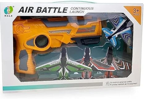 - [تجربة تفاعلية] : يساهم هذا المسدس في تعزيز التفاعل بين الأطفال، حيث يمكنهم التنافس في من يطلق الطائرة لأبعد مسافة.