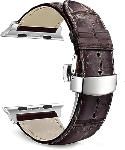 Next store - Next Store Crocodile Pattern Leather Watch Band Compatible with iWatch Series 1 to 9 Ultra/Ultra 2/SE 42mm 44mm 45mm 49mm Brown Unisex