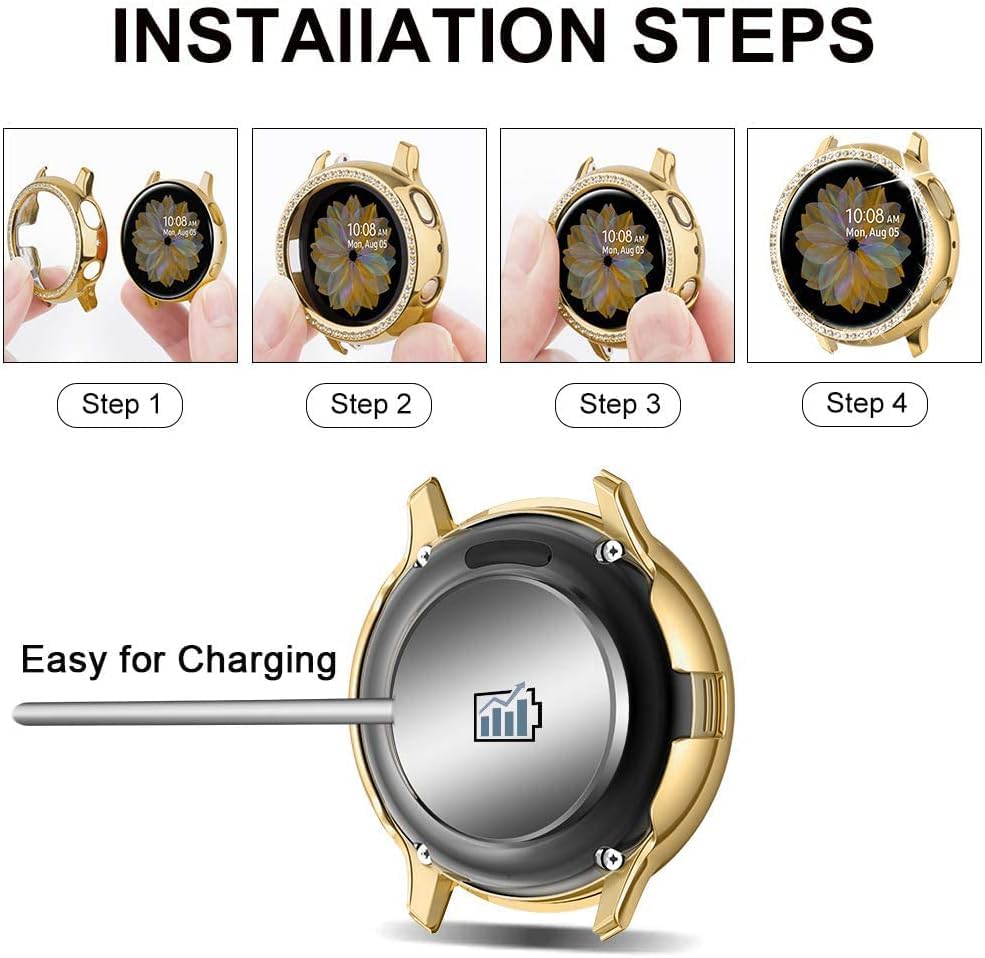 Next store - Next Store Diamond Hard Case Compatible with Samsung Galaxy Watch Active 2 44mm, PC Protective Frame with Bling Crystal Diamond