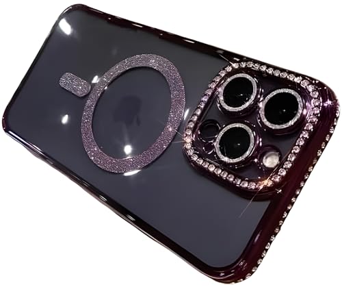 Next store - Next Store Fashion Clear Phone Case, Bling Diamond Case, Compatible with iPhone 13 Pro Max, Case Compatible with Magnetic Wireless Charging (Purple)
