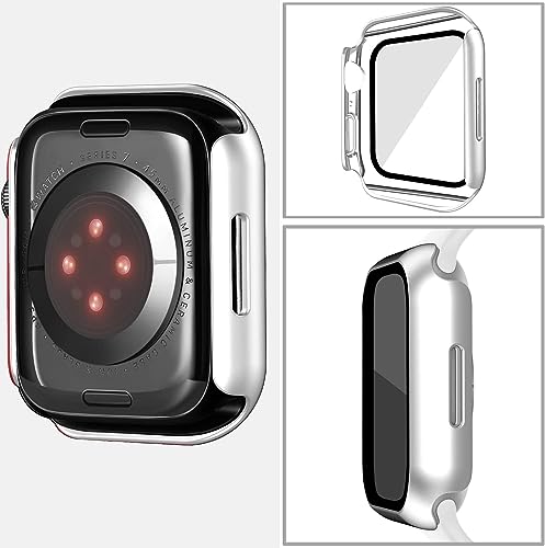 Next store - حافظة حماية صلبة مع شاشة حماية من الزجاج المقوى بتصميم متين ورفيع للغاية لساعة اي ووتش سلسلة 6/5/4 مقاس 44 ملم من في فولت (لون فضي)