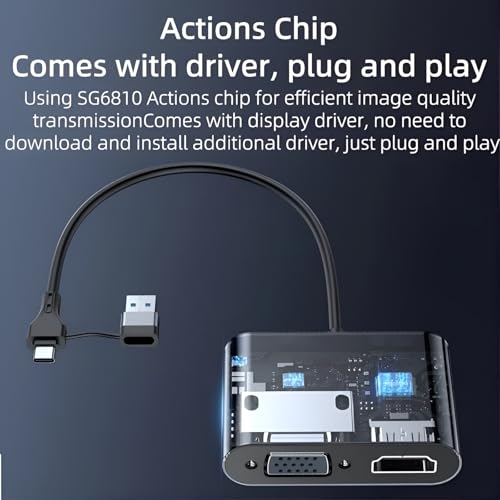- محول ذكي يدعم التوصيل عبر USB-C ويتيح لك عرض المحتوى على شاشات HDMI أو VGA بدقة عالية، مثالي للعمل أو الترفيه أو العروض التقديمية.