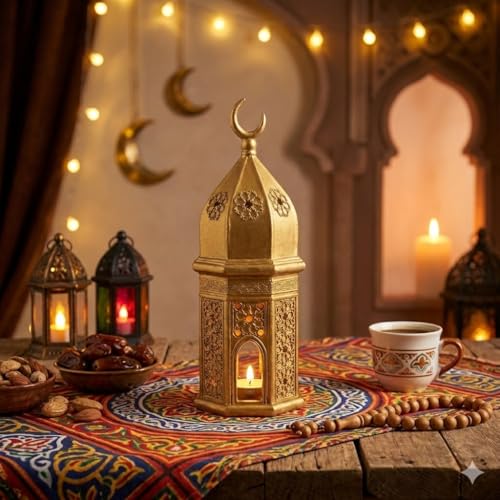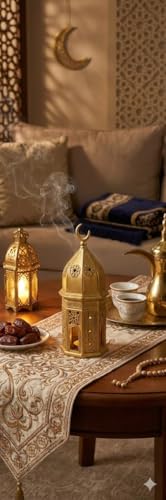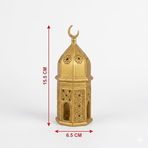 Next store - Next Store Islamic Ramadan Lantern Decorative Incense Burner Geometric Crescent Moon Crescent Moon Decor Masterpiece for Home Office (Gold 3)