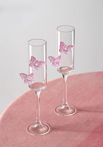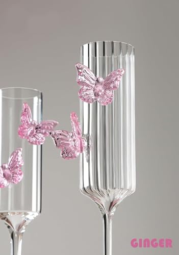 Next store - كأس عصير وماء لتقديم المشروبات الباردة، تصميم نقش فراشة بارز، زجاج كريستالي شفاف عالي الجودة من Next Store. (بينك)