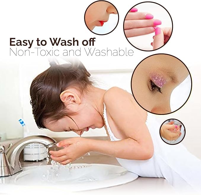 - [تعزيز الإبداع وتنمية الخيال] : تتيح لعبة المكياج للأطفال فرصة استكشاف عالم الموضة والجمال، مع تعزيز مهارات الإبداع والتنسيق وتنمية الخيال أثناء تجربة أدوات التجميل والتزيين بطريقة ممتعة وآمنة تحاكي الواقع.