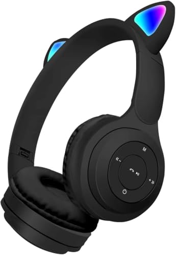 Next store - Next Store Kids Stereo Bluetooth Headphones Over Ear Headphones with LED Glowing Light Up Cute Ear Headphones with Mic Wired Foldable Space Saving Storage Easy to Carry (Black)