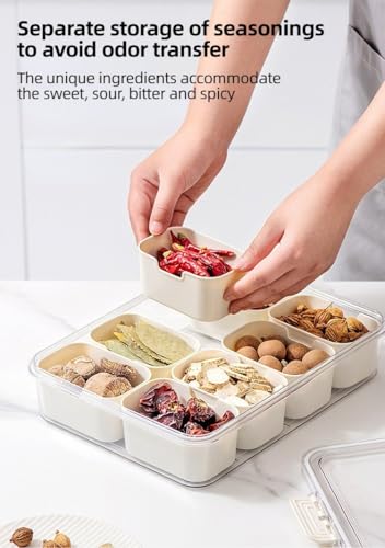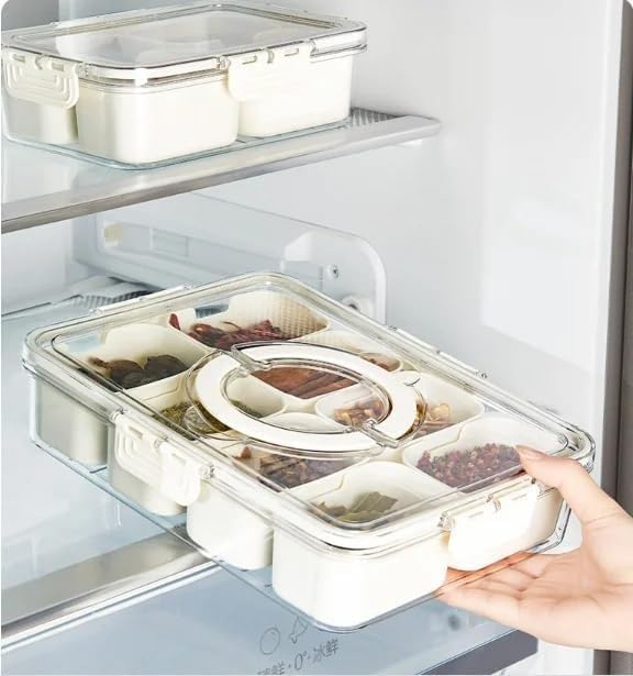 • 8 BOTTLE BOTTLE : Comes with large storage capacity divided into eight independent compartments, perfect for storing seasonings, nuts or different vegetables in one compact piece that saves plenty of space inside the refrigerator.