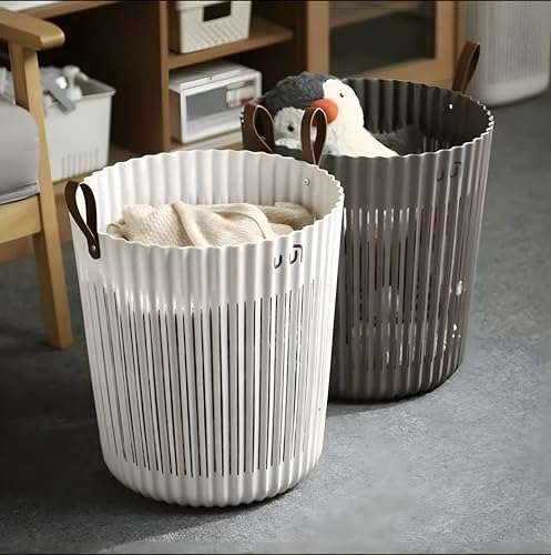 Next store - باسكت غسيل بلاستيك مرن ضد الكسر بيد جلد فاخر من Next Store، تصميم عملي وأنيق مقاس جامبو 38*40 سم للاستخدام المنزلي اليومي (بني)