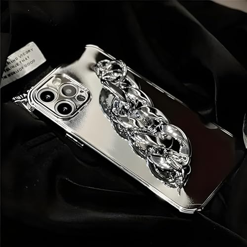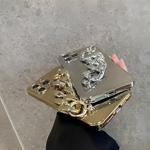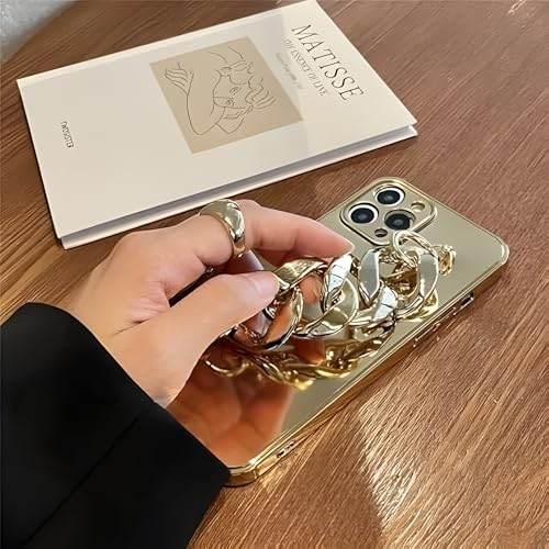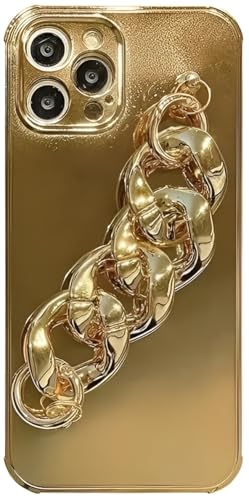 Next store - Next Store Luxury Electroplated Glitter Silicone Case with Wrist Chain Compatible with iPhone 14 - Women Flexible Back Cover - Elegant Mirror Design (Gold)