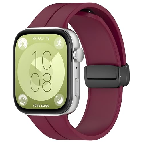 Next store - Next Store Magnetic Band Compatible with Huawei Watch Fit 3 2024, New Magnetic Silicone Strap with Folding Magnetic Buckle Compatible with Huawei Watch Fit 3 (Burgundy)