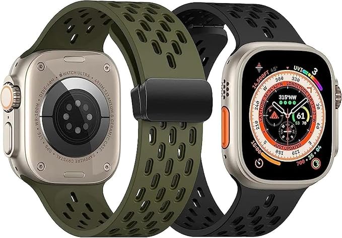 Next store - Next Store Magnetic Clasp Silicone Band Compatible with iWatch Ultra/Ultra 2/SE & 1 to 9-49mm 45mm 44mm 42mm, Silicone Strap with Hole (2 Pack)