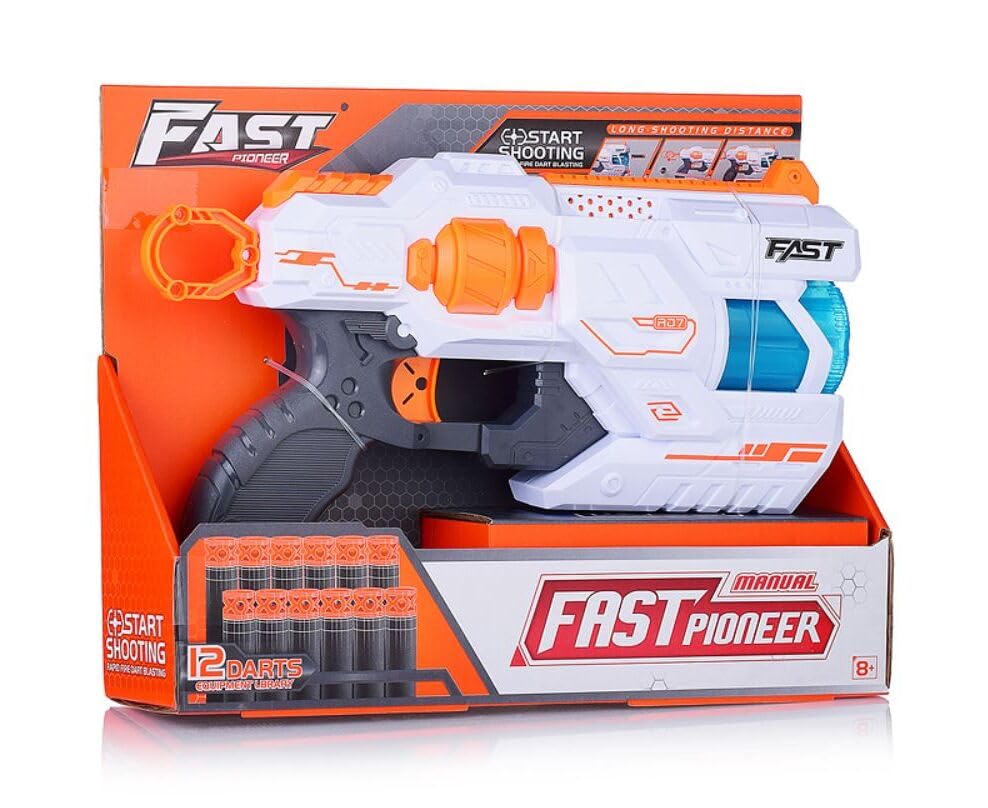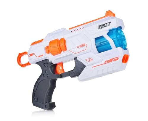 - [تصميم عملي بأسطوانة دوارة]: يتميز المسدس بأسطوانة دوارة تتيح سهولة التحميل والإطلاق، مما يوفر تجربة لعب سلسة وممتعة للأطفال.