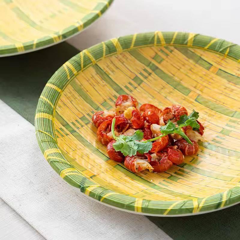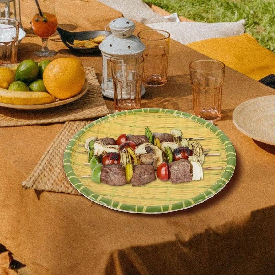 - [Nature-inspired elegant design:] The plate has a woven look that mimics natural bamboo wood, giving your table a sophisticated touch of beauty and a warm look to match all decor.