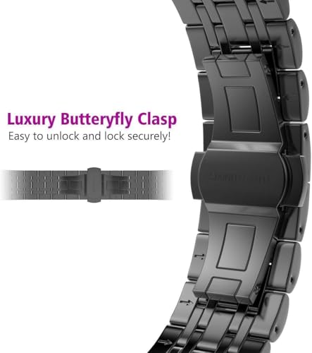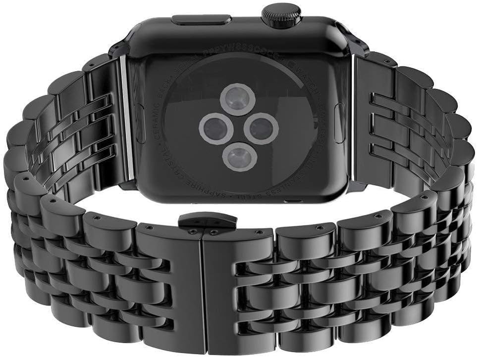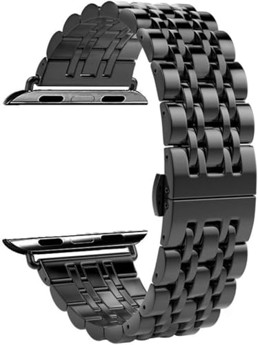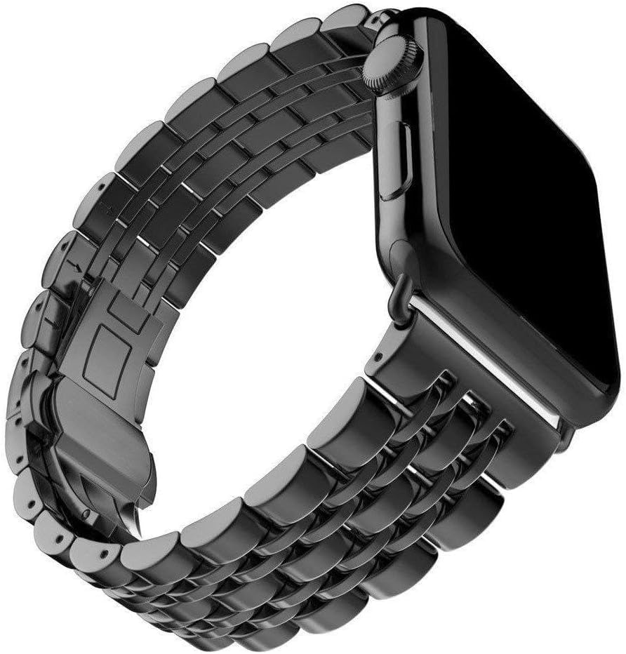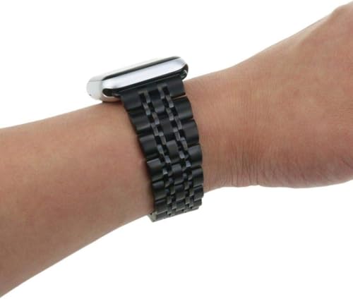 Next store - سوار معدني من نكست ستور متوافق مع ساعة اي ووتش 42 ملم 44 ملم سلسلة 1/2/3/4/5/6/7/8/9/SE/الترا/الترا 2، ستانلس ستيل اسود، للجنسين، عصري وانيق، قابل للتعديل