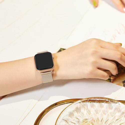 Next store - سوار معدني من نكست ستور متوافق مع سلسلة اي ووتش 1/2/3/4/5/6/7/8/9 38 ملم 40 ملم 41 ملم، سوار شبكي من الفولاذ المقاوم للصدأ مع مشبك مغناطيسي. ستارلايت.