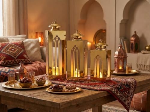 - COMPLETE SET (3 SIZE): The product consists of 3 gradient sized lanterns (Large, Medium, Small), allowing you to coordinate them together as a luxurious centerpiece, or distribute them in different corners of the room to create an attractive visual balance.
