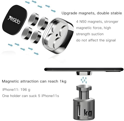 - [COMPATIBLE WITH DIFFERENT SIZES: The stand supports the use of all phone sizes thanks to its smart design and strong magnet, making it suitable for multiple use by the whole family. Practical, durable solution to securely and easily hold your phone while driving without any complication or additional fitting.
