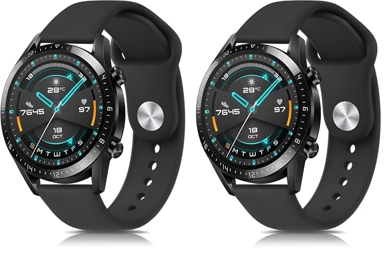 Next store - Next store New 22mm Silicone Replacement Sport Strap Wristband Compatible with Huawei Watch Classic GT3, GT2, GT2, GT2 Pro (Black), unisex-adult (Pack of 2)
