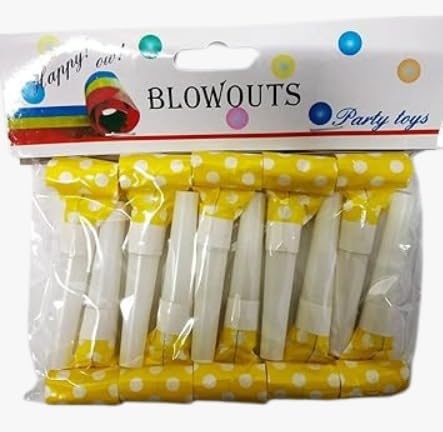 Next store - لعبة زمارة نفخ من Next Store للحفلات – 10 قطع صفارات ملونة مزينة بنقاط بيضاء، ألعاب احتفالية للأطفال، مثالية لأعياد الميلاد، توزيعات حفلات، أصوات مرحة للبنات والأولاد، آمنة ومسلية. (اصفر)