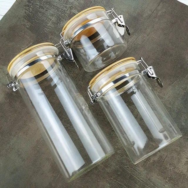 - [ 3 PRACTICAL SIZES]: The set includes three different capacity to suit your varying seasoning, legume or cereal storage needs with 950ml / 750ml / 550ml sizes. Variety of sizes gives you practical flexibility to organize your kitchen in a neat and tidy style.