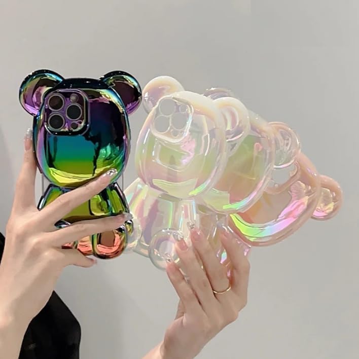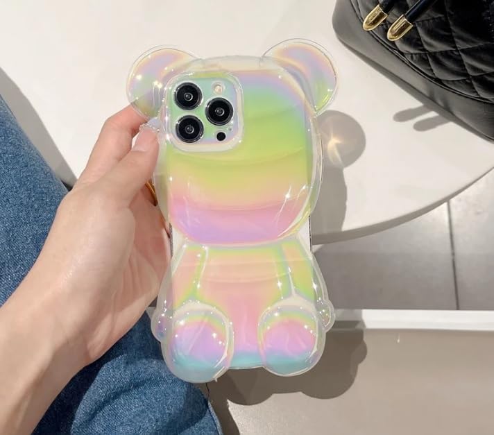 Next store - جراب حماية بإطار سيليكون مضاد للصدمات وتصميم ثلاثي الأبعاد رفيع للغاية لدب منحوت متوافق مع آيفون 11 من نيكست ستور (شفاف)