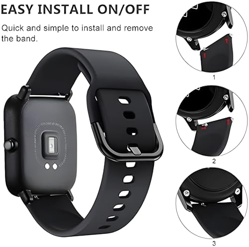 Next store - سوار سيليكون متوافق مع امازفيت جي تي اس 3، 2، بيب يو، يو برو، اس، لايت، 2e - 20 ملم من نيكست ستور (لون أسود 01)، سوار صغير للرجال