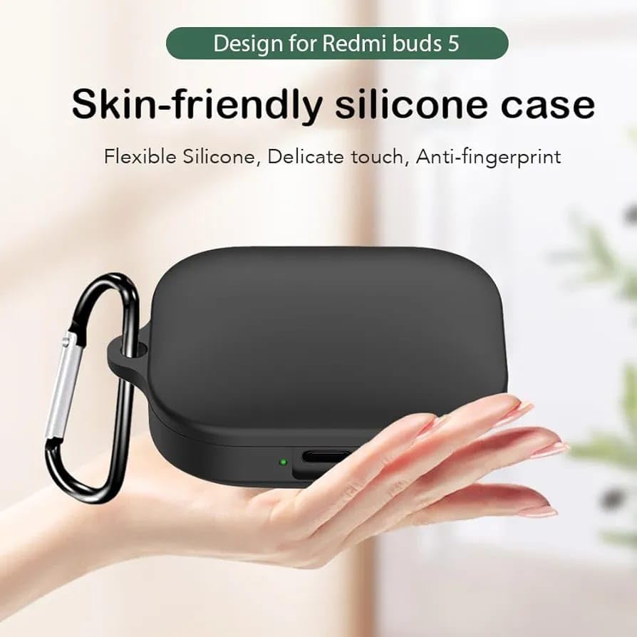 Next store - جراب حماية سيليكون متوافق مع سماعات ريدمي 5 مع حزام تعليق للمفاتيح، بحماية متكاملة وتصميم جذاب، مثالي للاستخدام اليومي من نيكست ستور - لون أبيض