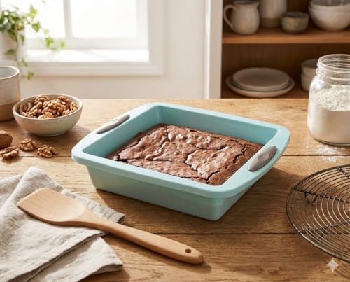 Next store - Next Store Square Silicone Baking Pan with Contrast Side Handles, Flexible Non-Stick Cake Mold, Perfect Kitchen Tool for Brownies, Desserts, Baking.