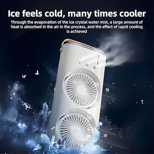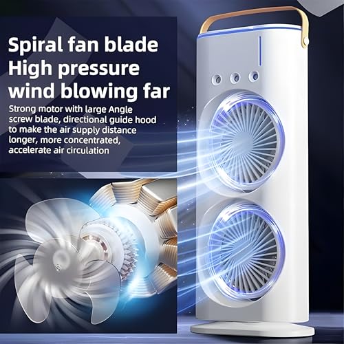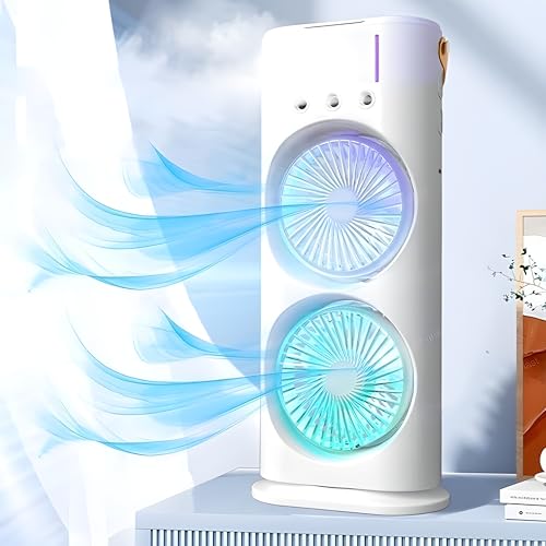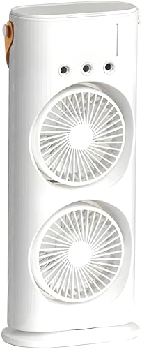 Next store - مروحة مزدوجة الرأس USP من Next Store – مزودة بمرطب هواء بتحكم، دوران 180° وتدوير 90°، 3 سرعات، إضاءة محيطية، تصميم محمول للمكتب والمنزل والسفر