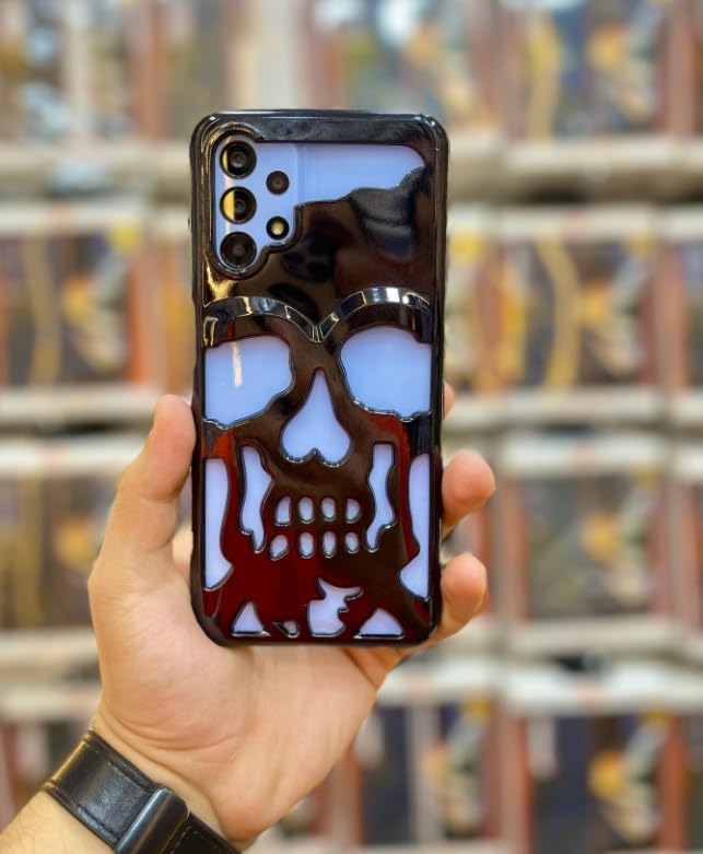Next store - جراب بتصميم جمجمة مفرغ من الهواء جريء وانيق متوافق مع سامسونج جالاكسي A14 نكست ستور يعمل على تهوية الهاتف لمنع الحرارة اسود حافظة بسيطة البولي يوريثين الحراري