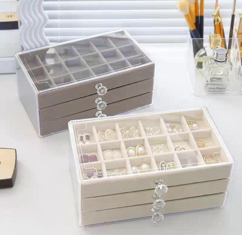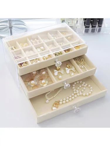 Next store - Next Store Velvet Accessories Organizer Three Tier with Luxury Crystal Handle, Chic and Elegant Design to Keep Jewelry and Accessories in an Organized and Fashionable Way for Office or Bedroom (Beige)