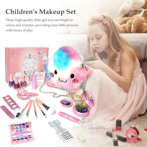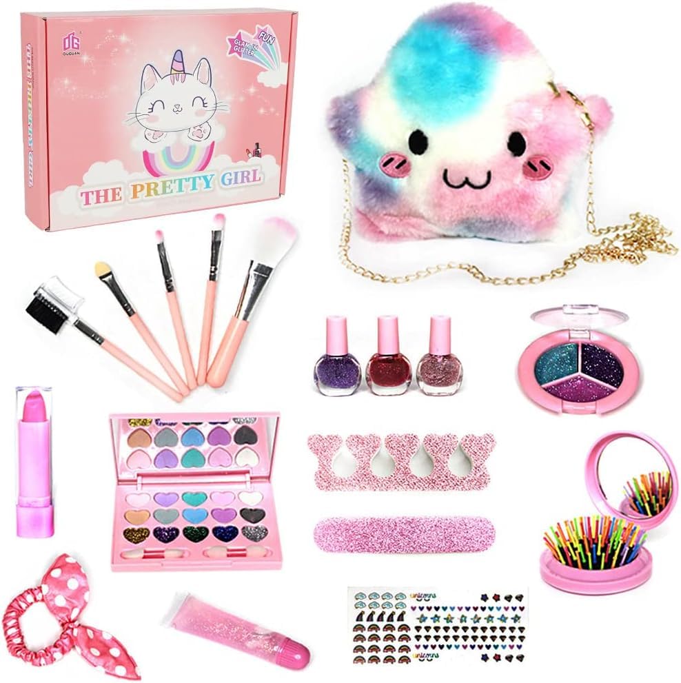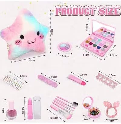 - [EASY TO CLEAN & COMFORT:] This set contains washable cosmetics, making the cleaning process easy and fast. Whether a girl has used makeup on her hands or face, parents can easily wash the tools after each use, ensuring that they are clean and promote comfortable and worry-free use.