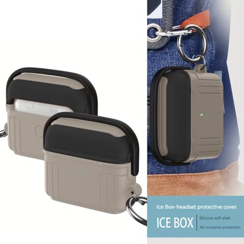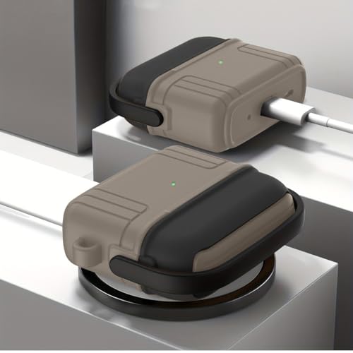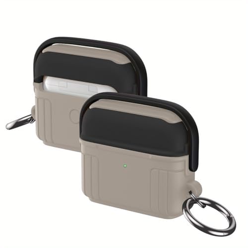 Next store - Next store Waterproof Case for AirPods Pro 1st Generation, Premium Silicone Protective Case for AirPods Pro, Wireless Charging, Shockproof, Carabiner, LED Visible - by Next store (Beige/Black)