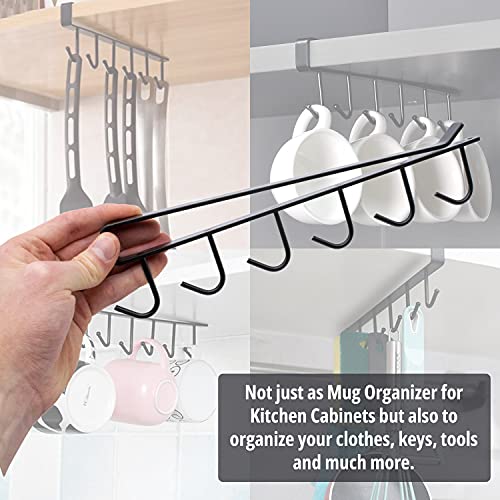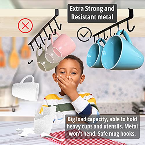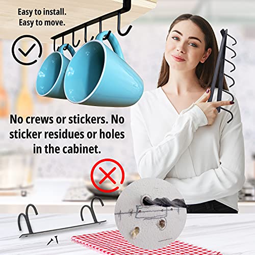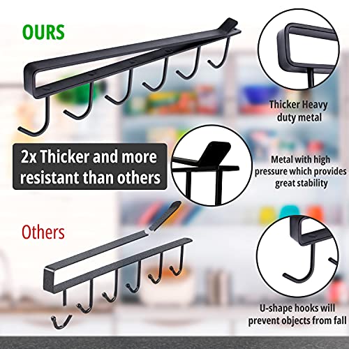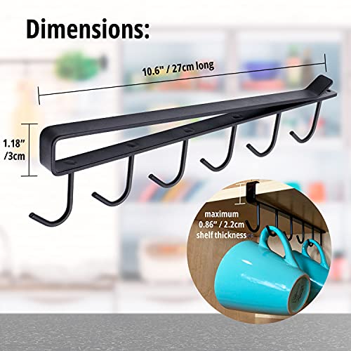 NextClimb - حامل بخطافات متين ومقاوم وسهل التركيب لتعليق وتنظيم الاكواب تحت خزينة المطبخ من نكست كلايمب، حديد، أسود