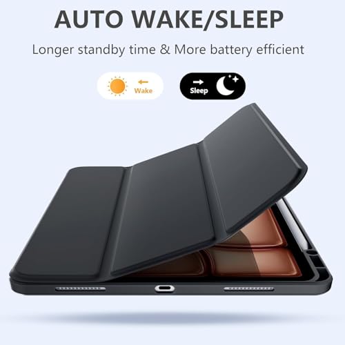 Next store - NextStore Case for iPad Air 13 Inch (M2) & iPad Pro 12.9 Inch (6/5/4/3rd Generation), Clear Back Cover with Pencil Holder, Slim Shockproof Stand, Compatible with Auto Wake/Sleep.(Black)